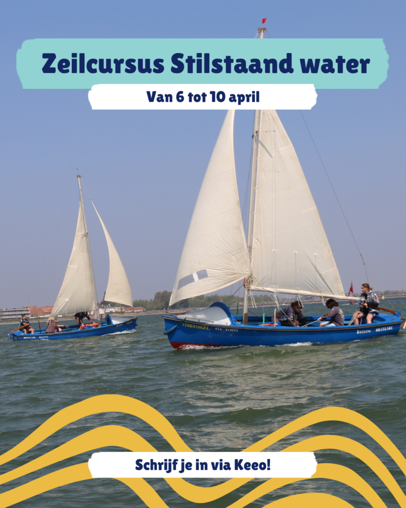 De Zeilcursus op Stilstaand water wordt jaarlijks georganiseerd voor beginners en gevorderden. Deze vijfdaagse cursus gaat door tijdens de paasvakantie en vindt plaats in Brugge. Beginners leren de basis van het zeilen: zeilbevelen begrijpen, een zeilboot leren kennen en veelgebruikte knopen. Gevorderden leren om het bevel te voeren over een zeilboot op stilstaand water. Ze ontwikkelen inzicht en leren zowel lijnwerpen als perfecte knopen leggen.